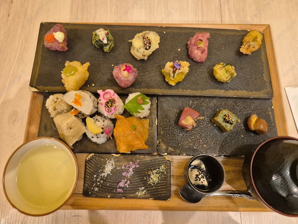 주먹밥이랑 다양한 야채튀김이랑 예쁘게 나오는데